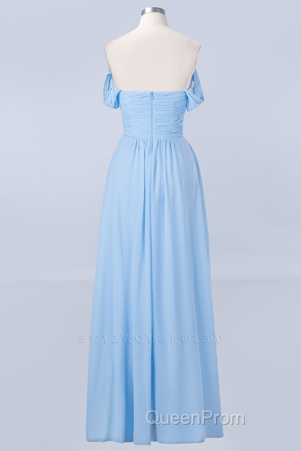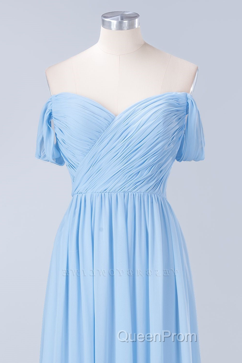 Blue Off the Shoulder Pleated Chiffon Long Bridesmaid Dresses