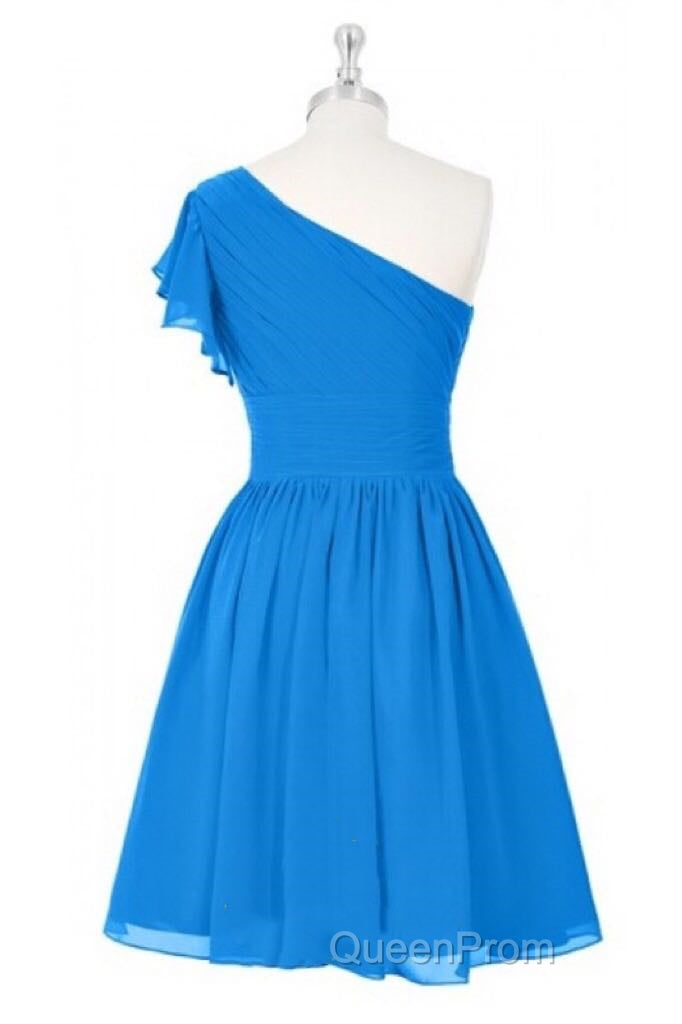 Blue One-Shoulder Ruffled Sleeve Short Bridesmaid Dresses