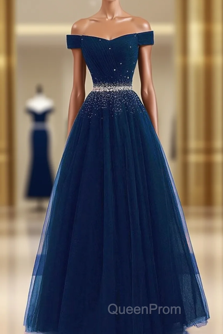 Blue Evening Prom Dresses,tulle Evening Prom Gown,off Shoulder Evening Prom Dresses,long Evening Prom Dresses,a Line Evening Dresses