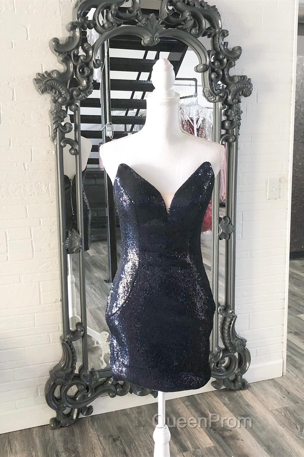 Blue Sequin Strapless Bodycon Homecoming Dresses