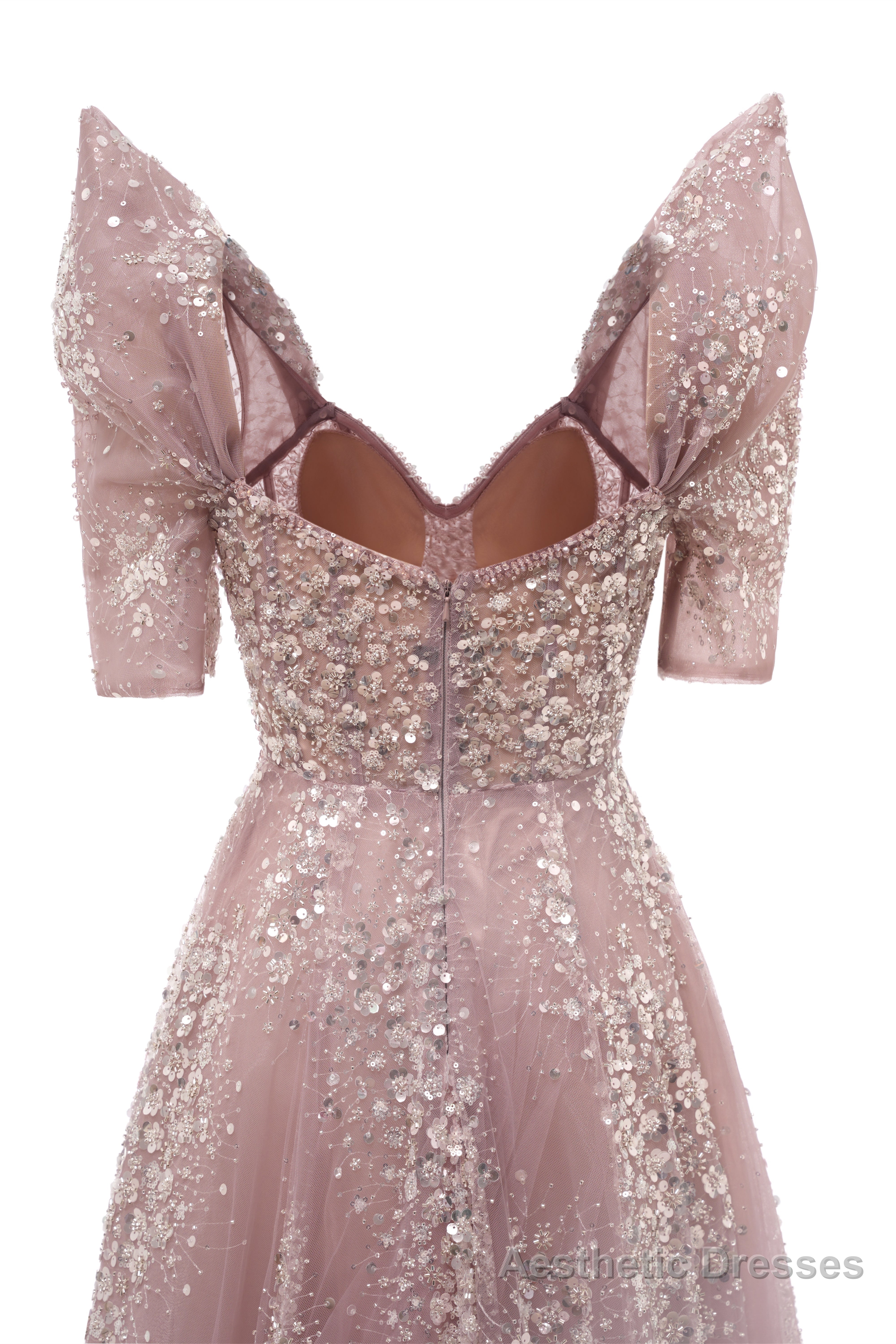Blushing Pink Lace Crystal Sequin Long Prom Dresses Luxury Evening Gowns Vintage Party Dresses