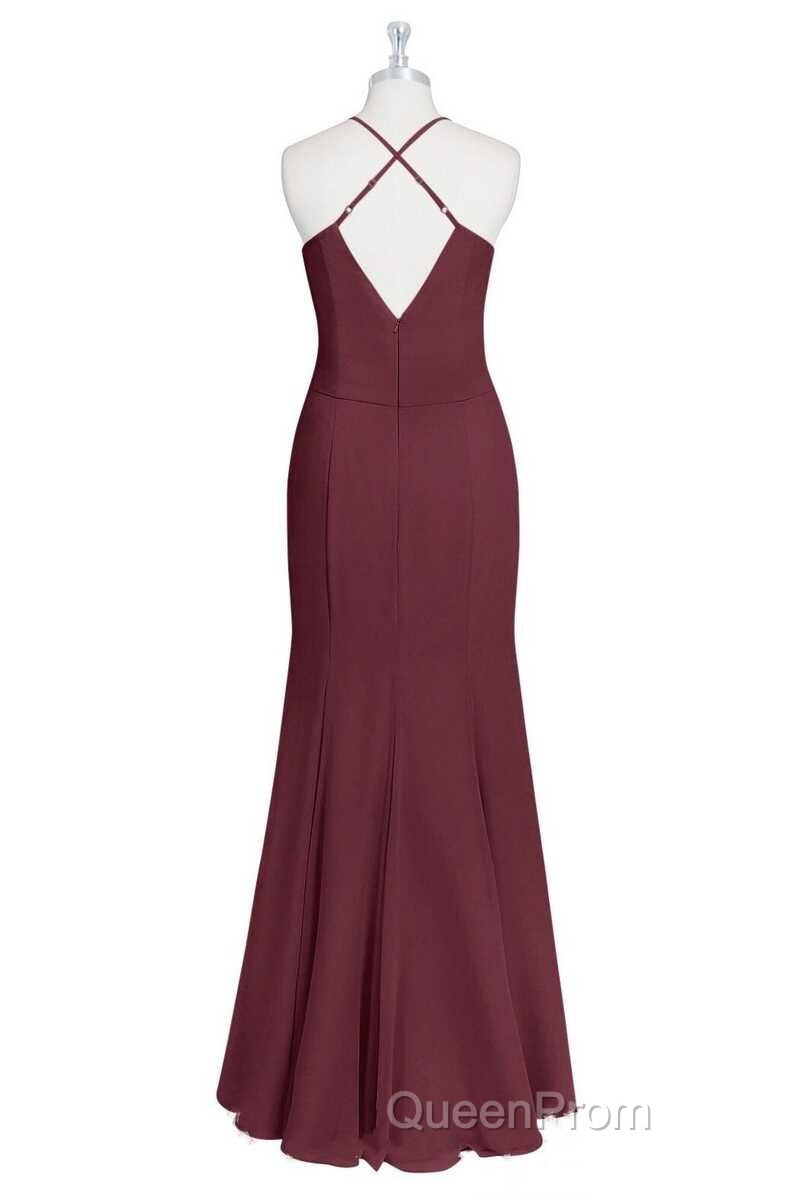 Burgundy Chiffon Cross-Back Mermaid Long Bridesmaid Dresses