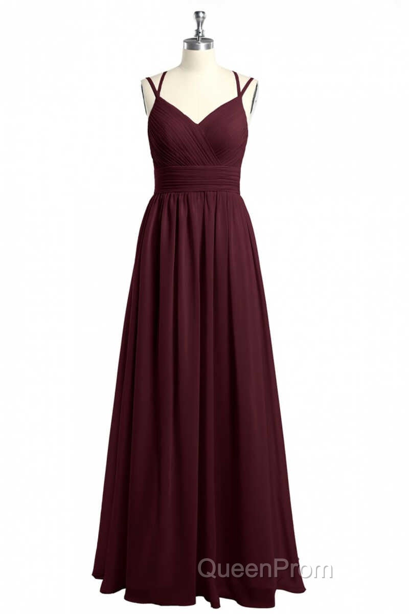 Burgundy Chiffon Spaghetti Straps A-line Long Bridesmaid Dresses