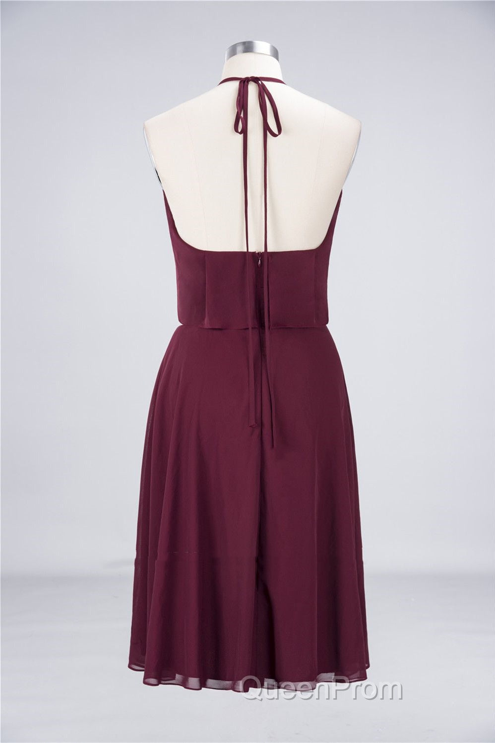 Burgundy Halter Backless Ruffled A-Line Short Dresses