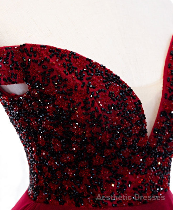 Burgundy Sweetheart Off Shoulder Tulle Long Prom Dress Tulle Formal Dress