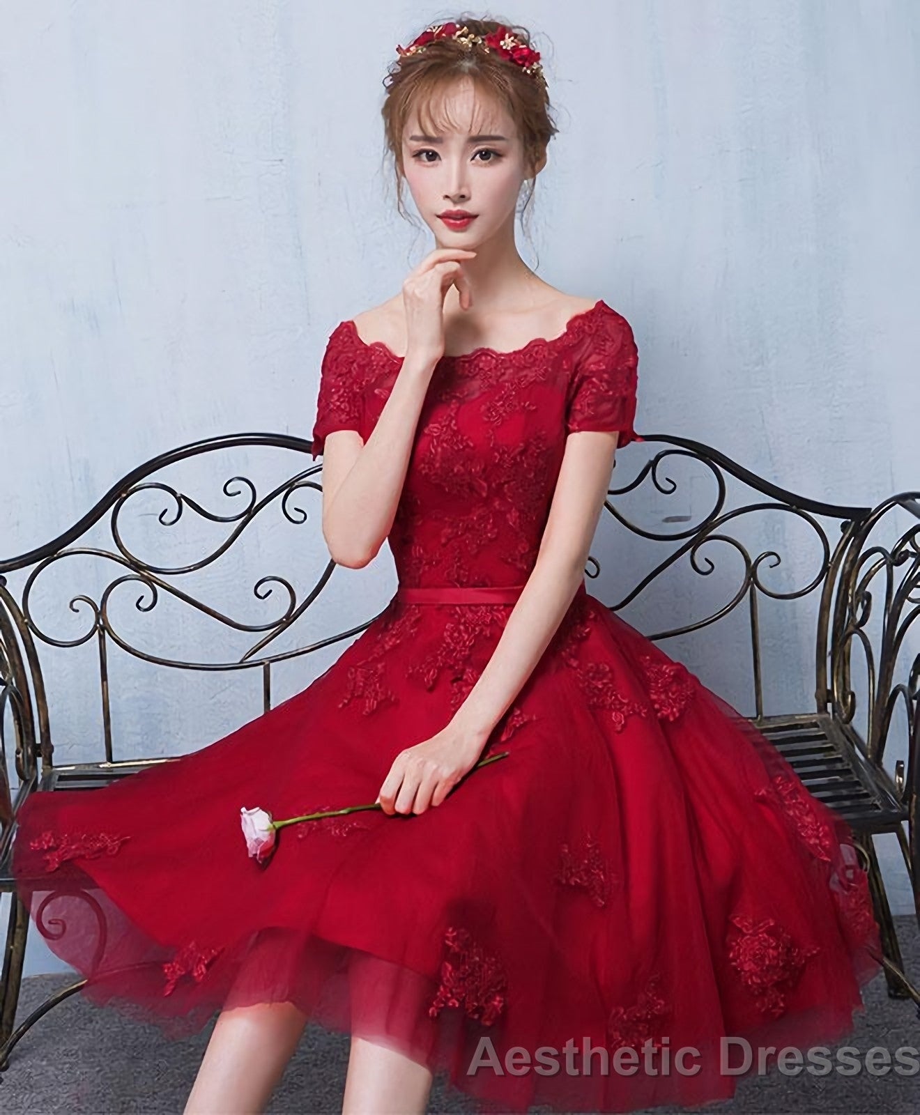 Burgundy Tulle Lace Short Prom Dress Burgundy Lace Homecoming Dress