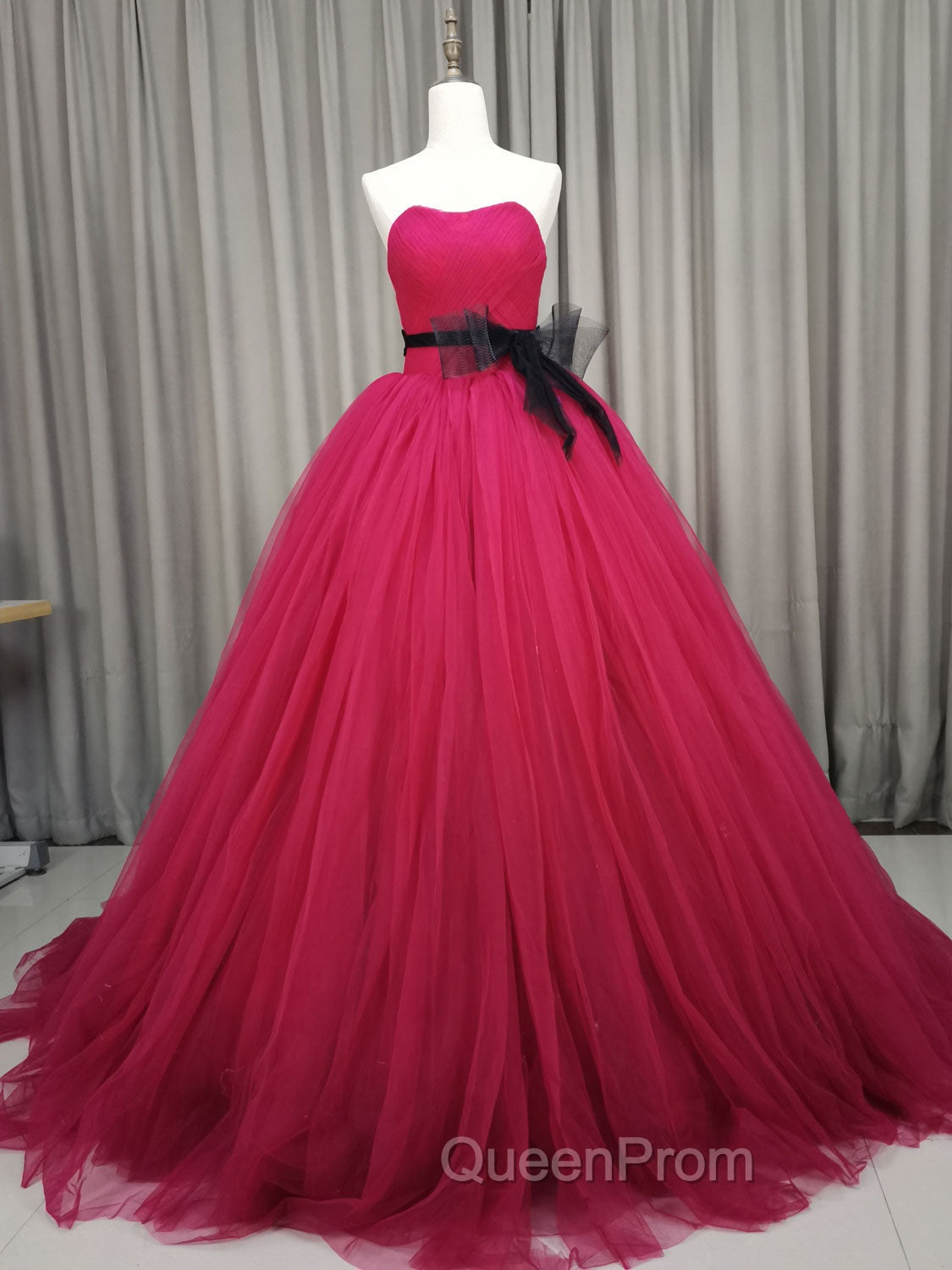Burgundy Tulle Long Evening Prom Gown, Burgundy Tulle Sweet 16 Dresses