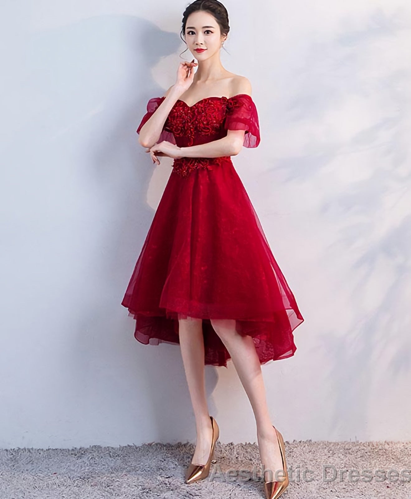 Burgundy Tulle Short Prom Dress Homecoming Dress