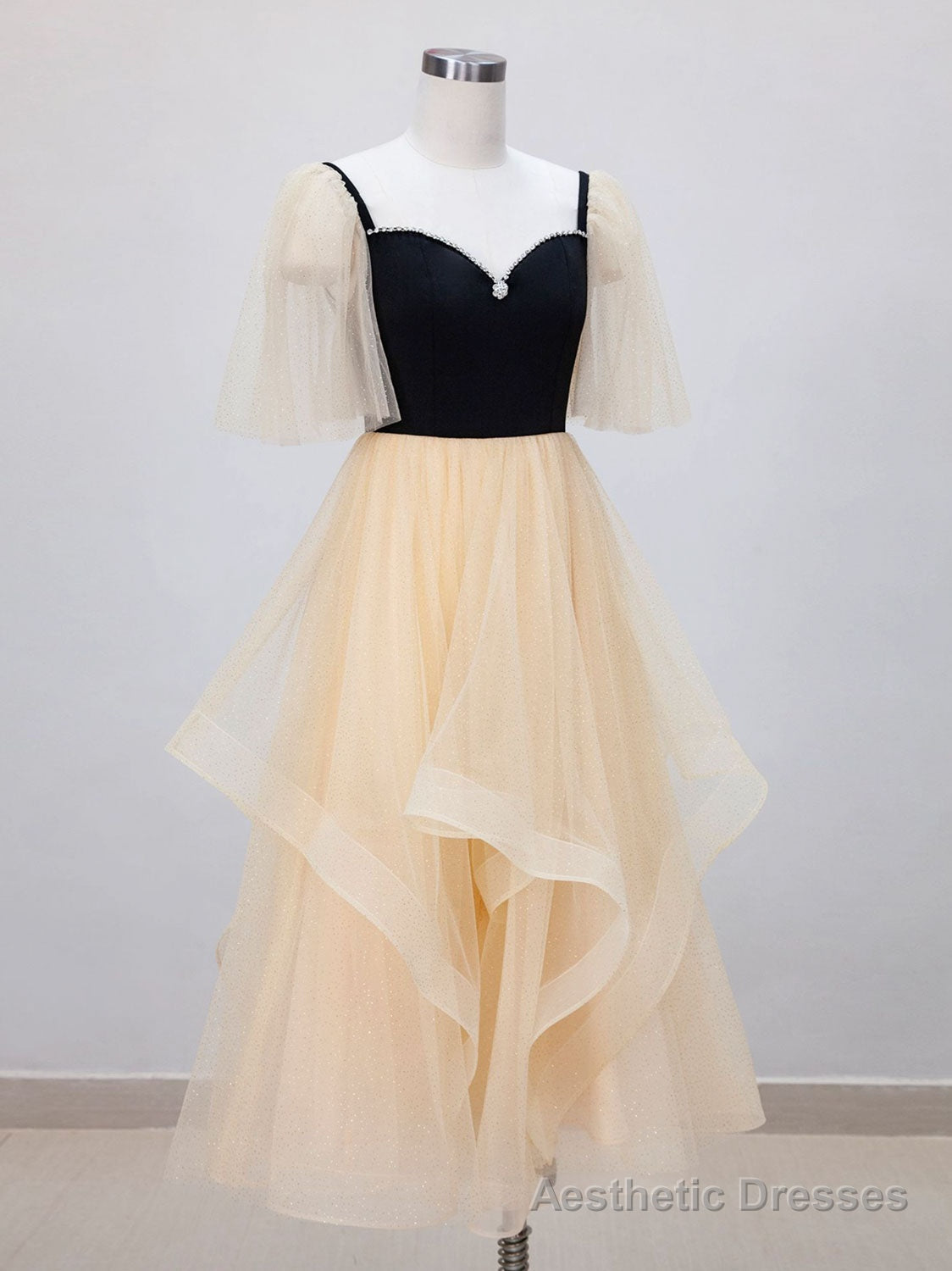 Champagne A-Line Tulle Short Prom Dresses, Champagne Formal Dress