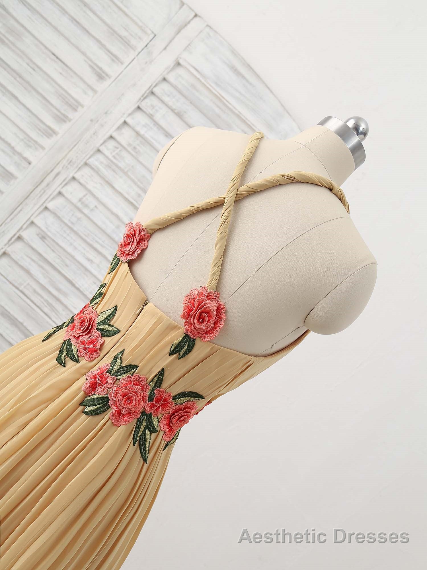 Champagne Chiffon Long Prom Dress, Chiffon Evening Dress
