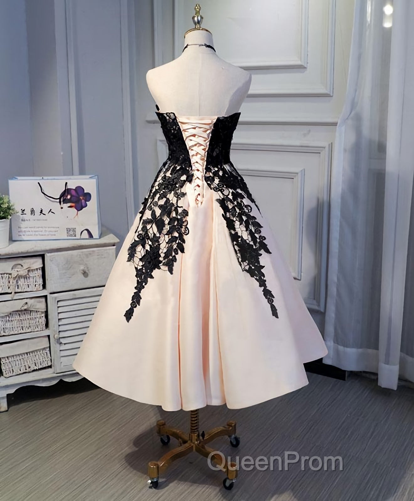 Champagne Lace Short Evening Prom Dresses, Lace Evening Dresses