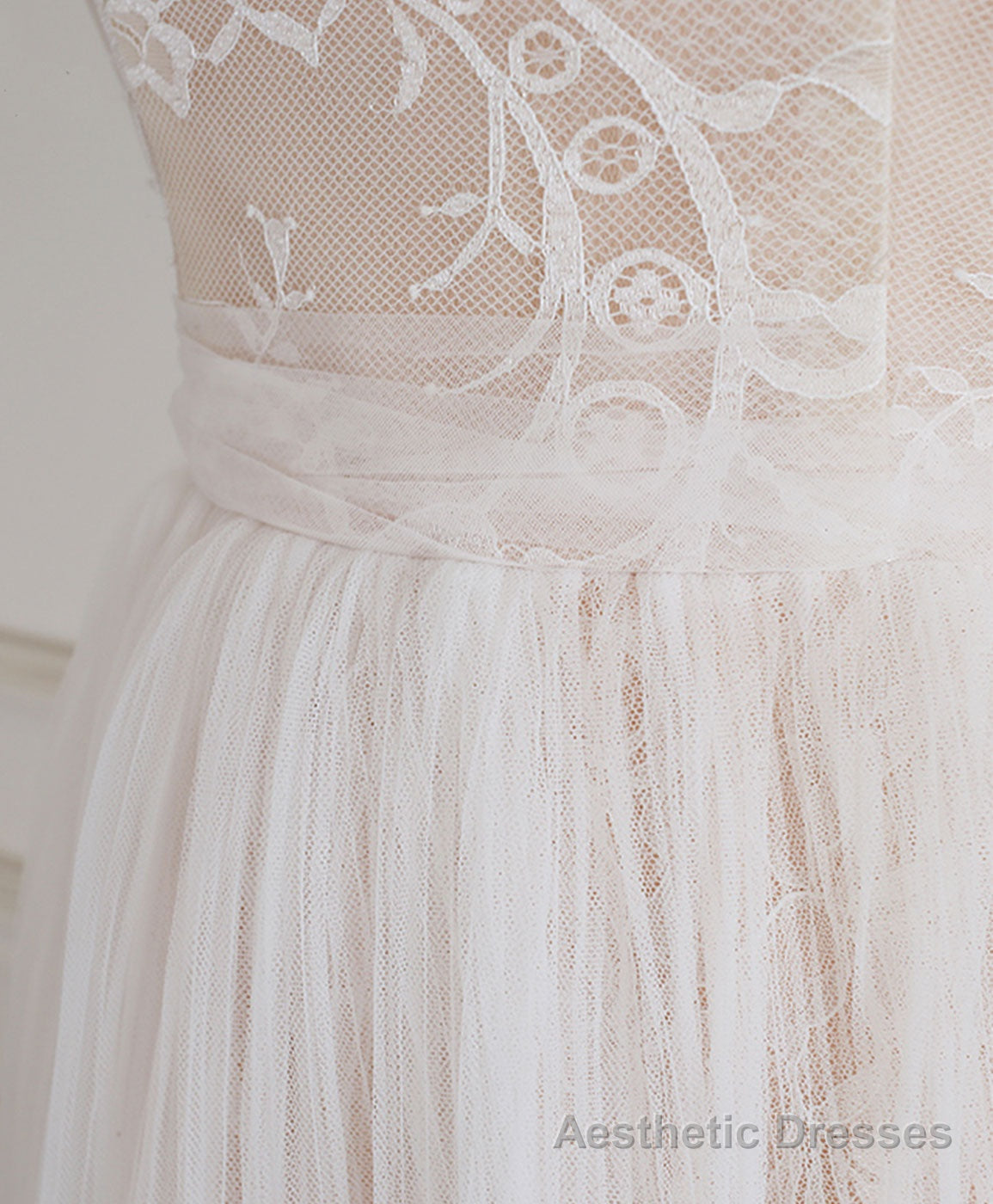 Champagne Sweetheart Tulle Lace Long Prom Dress Lace Evening Dress