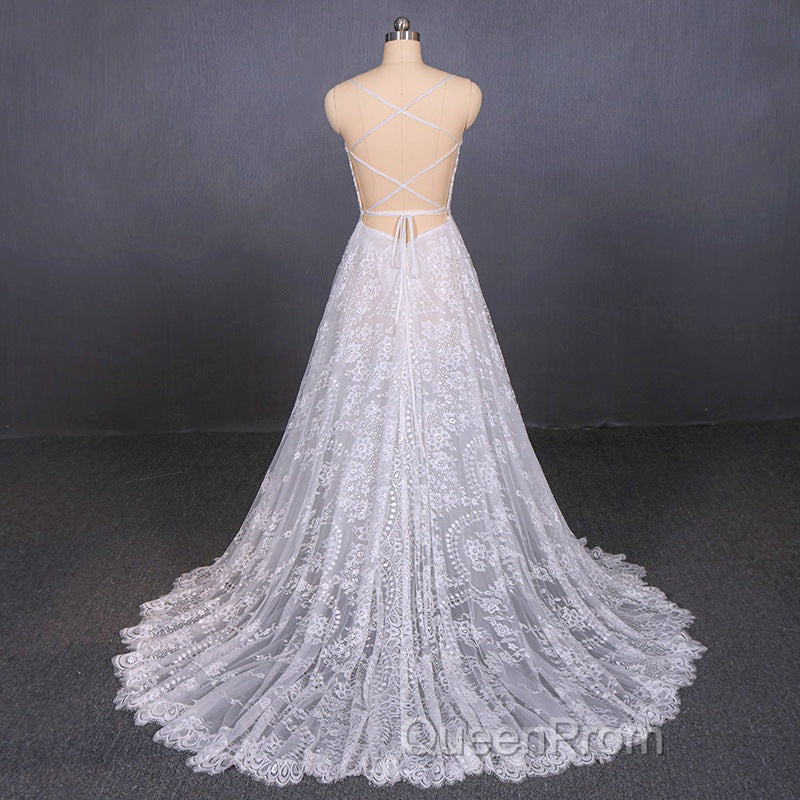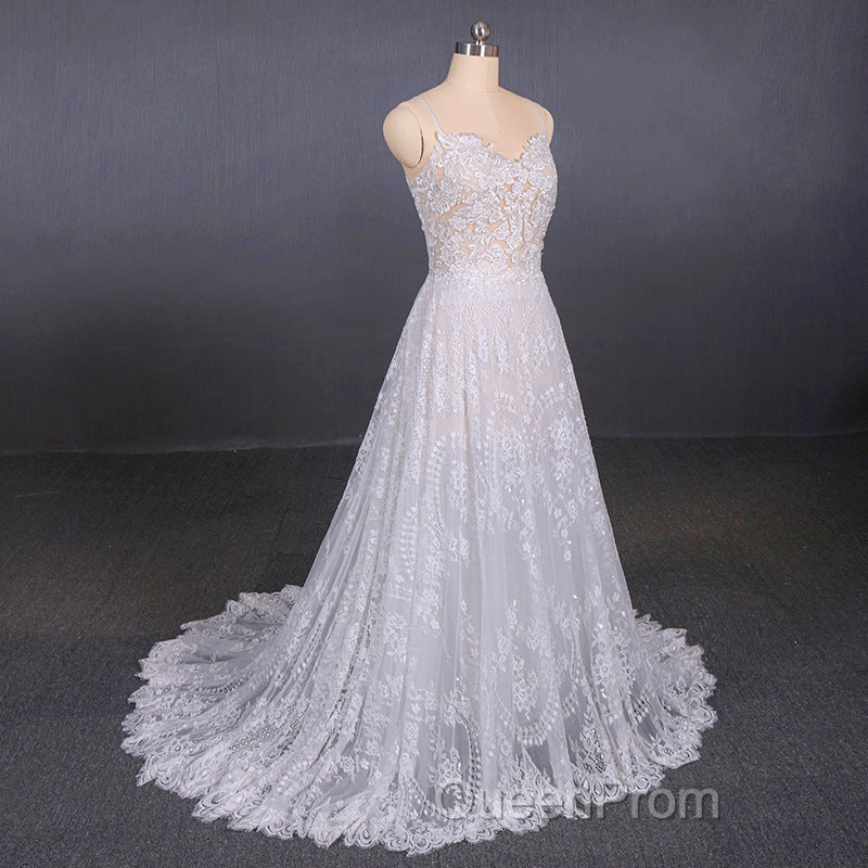 Charming Spaghetti Straps Long A-line Wedding Dresses Beach Wedding Dresses