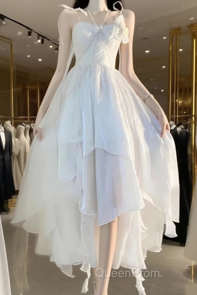Chic A Line Spaghetti Straps Chiffon White Ankle Length Birthday Dresses Birthday Outfits