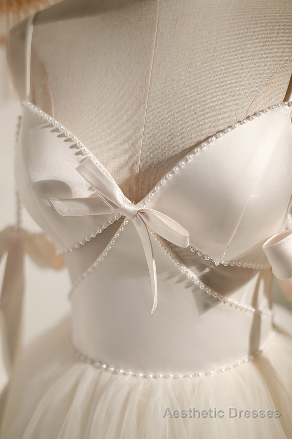 Chic Champagne Beading Bowknot Lace Up Short Homecoming Dresses