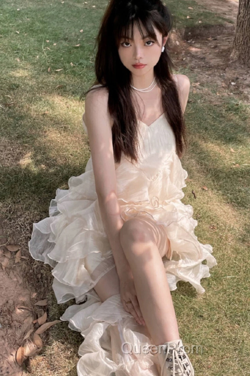 Chic High Low Spaghetti Straps Evening Prom Dresses Birthday Dresses With Ruffles