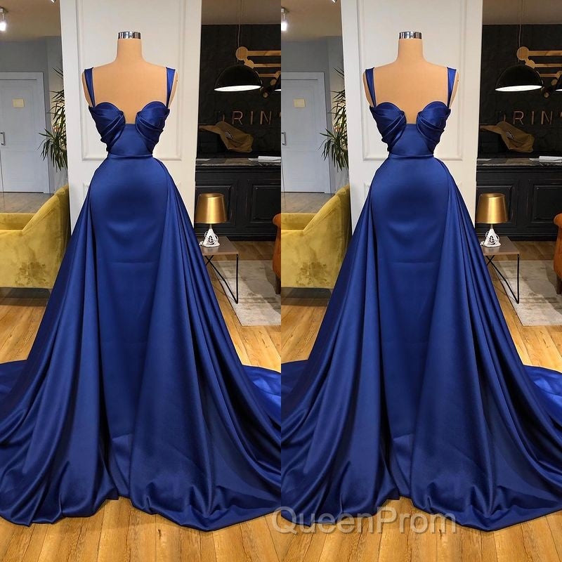 Chic Royal Blue Straps Sweetheart Evening Prom Dresses Overskirt With Detachable Train