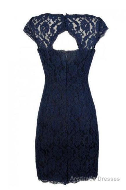 Classic Navy Blue Lace Short Mother of the Bride Dress