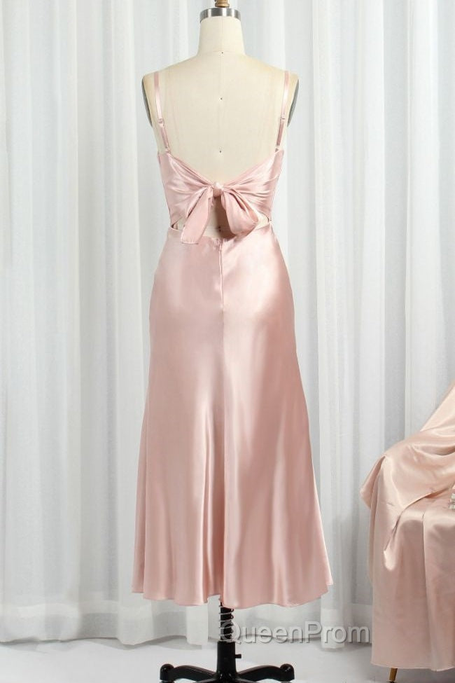 Classic Pink Spaghetti Straps Midi Party Dressess