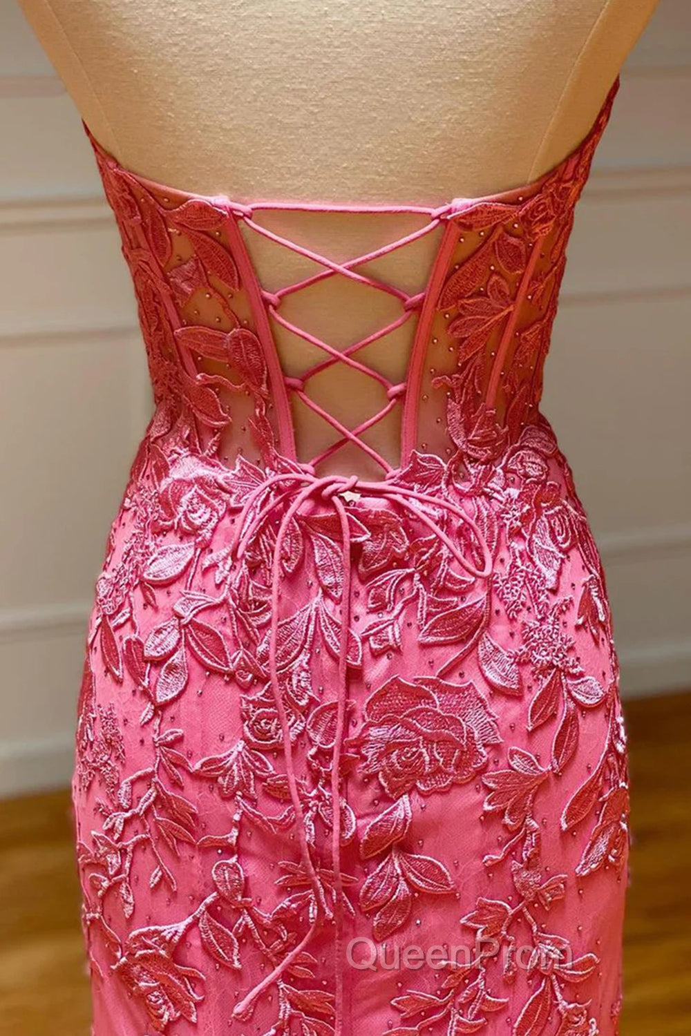 Coral Sweetheart Lace-Up Long Mermaid Evening Prom Dresses with Appliques