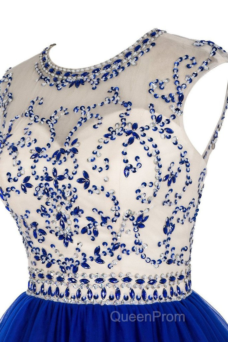 Custom Made Round Neck Cap Sleeves Beading Black Short Evening Prom Dresses Royal Blue Homecoming Dresses, Evening Dresses 2019