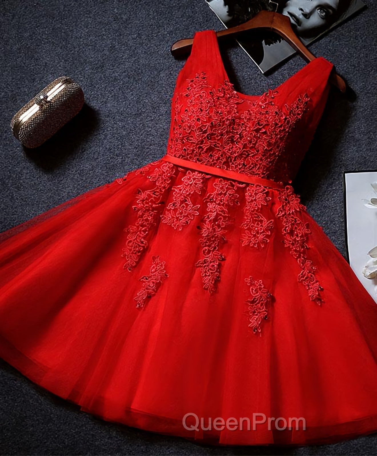 Cute A Line Tulle Lace Short Evening Prom Dresses, Homecoming Dresses