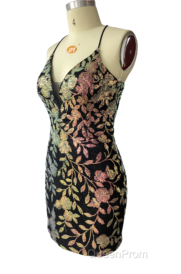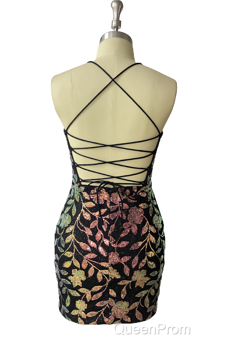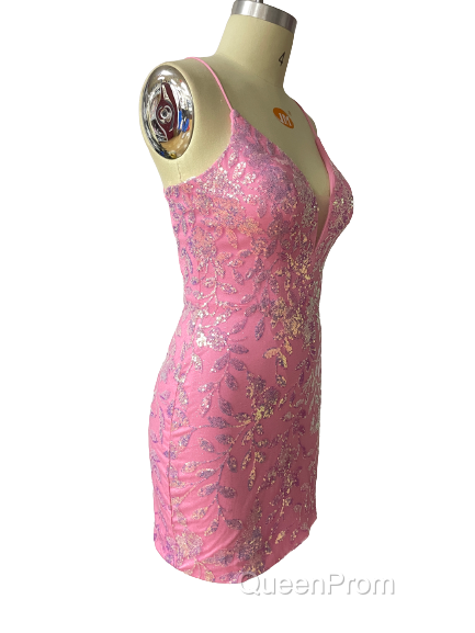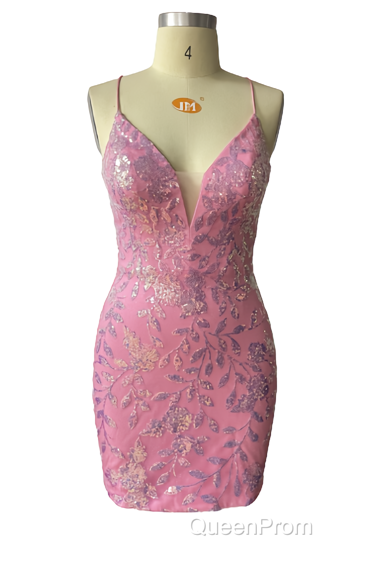 Cute Bodycon V Neck Blue Lace Homecoming Dresses