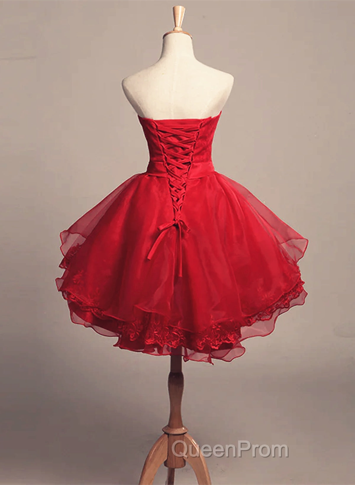 Cute Dark Red Tulle And Lace High Low Homecoming Dresses, Short Party Dresses