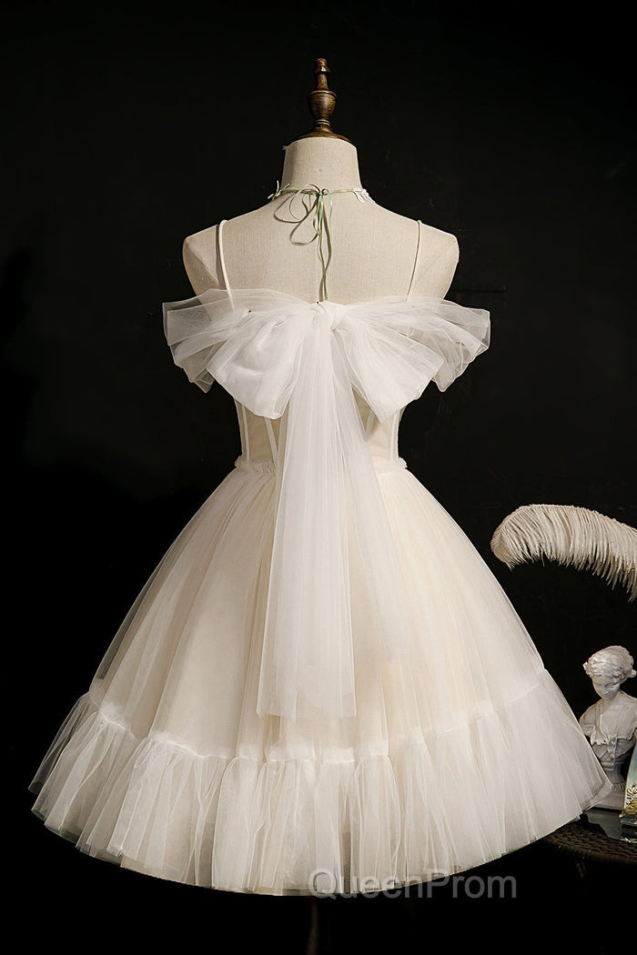 Cute Spaghetti Strap Tulle Short Homecoming Dresses