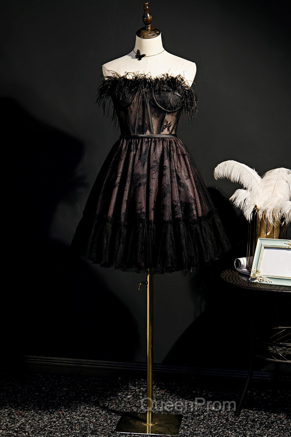 Cute Strapless Black Tulle Short Homecoming Dresses