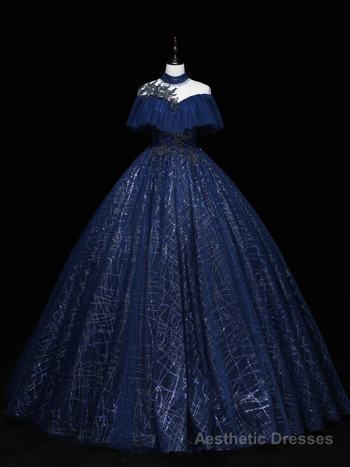 Dark Blue Long Prom Dress, Blue Tulle Formal Gown Graduation Dresses