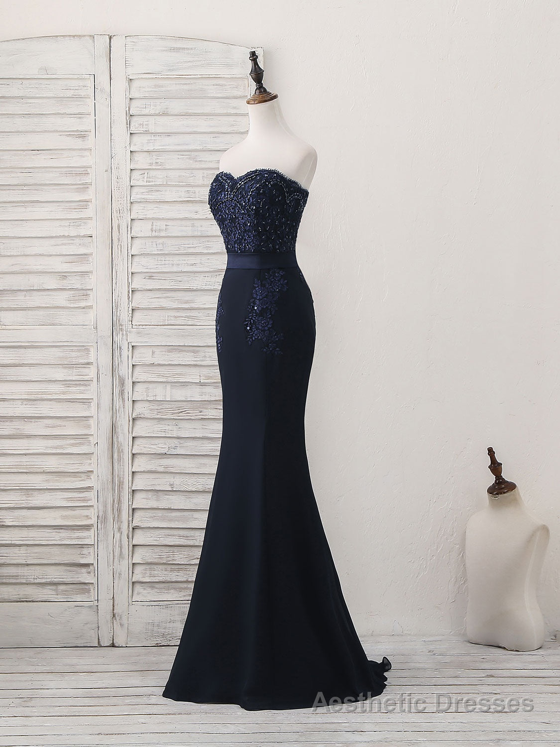 Dark Blue Sweetheart Mermaid Long Prom Dress, Dark Blue Evening Dress