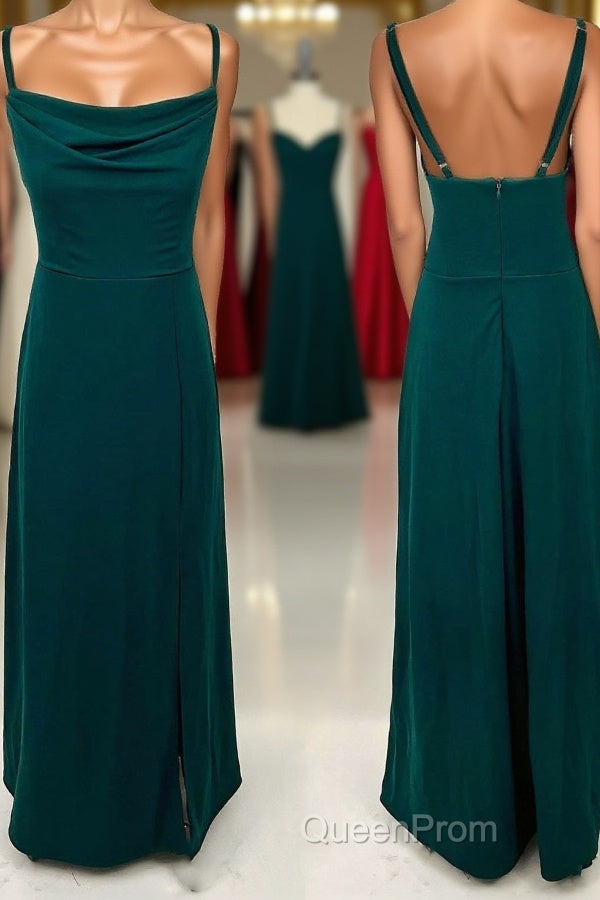 Dark Green Cowl Neck Straps Chiffon Long Bridesmaid Dresses