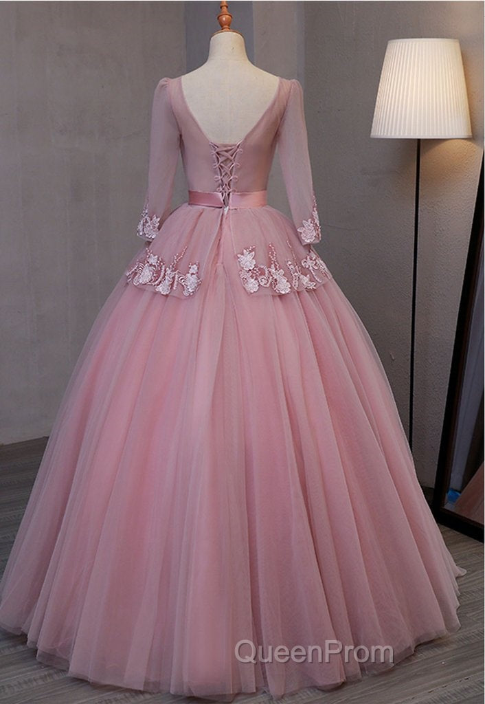Dark Pink V-Neckline Ball Gown Lace Applique Sweet 16 Dresses, Pink Evening Prom Dresses Party Dresses