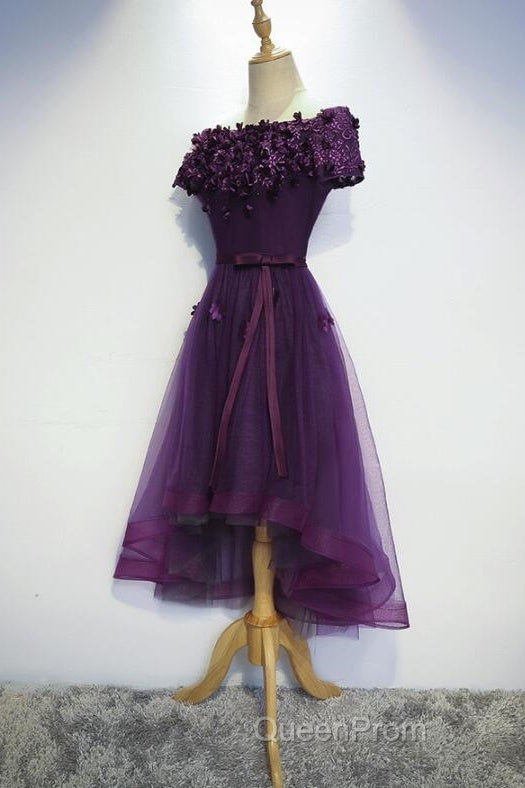Dark Purple High Low Homecoming Dresses, Cute Formal Dresses, Evening Prom Dresses