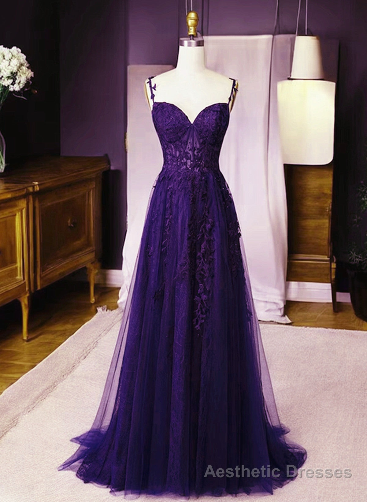 Dark Purple Sweetheart Tulle with Lace Straps Party Dress, Dark Purple Prom Dress