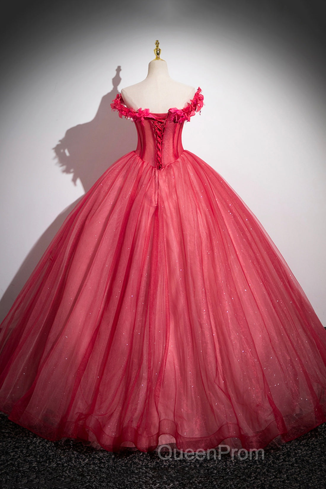 Dark Red Beading Evening Prom Dresses With Corset, Off The Shoulder Short Sleeve Floor-Length Party Dresses