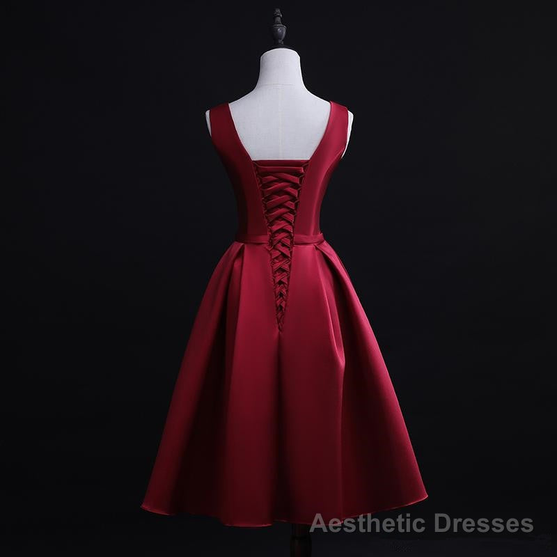 Color:Wine Red,Hemline: KneeLength,Back Details:Lace-up