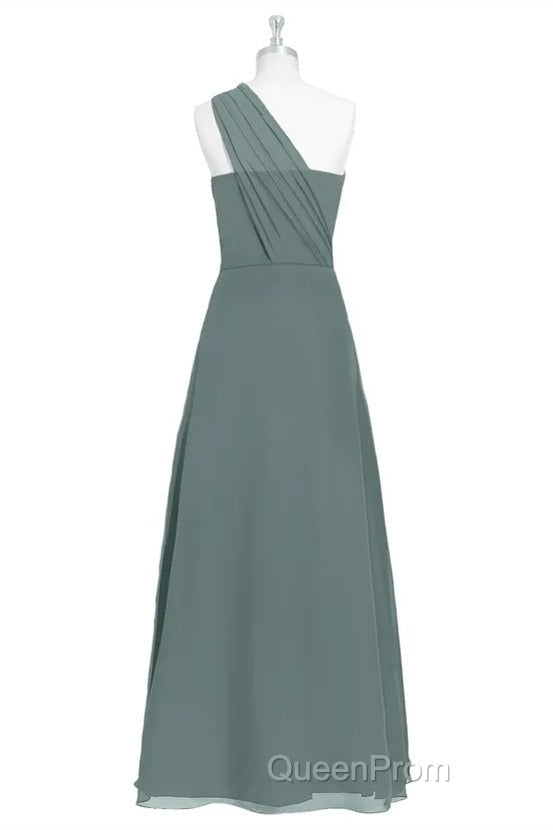 Dark Sage Green Chiffon One-Shoulder Long Bridesmaid Dresses