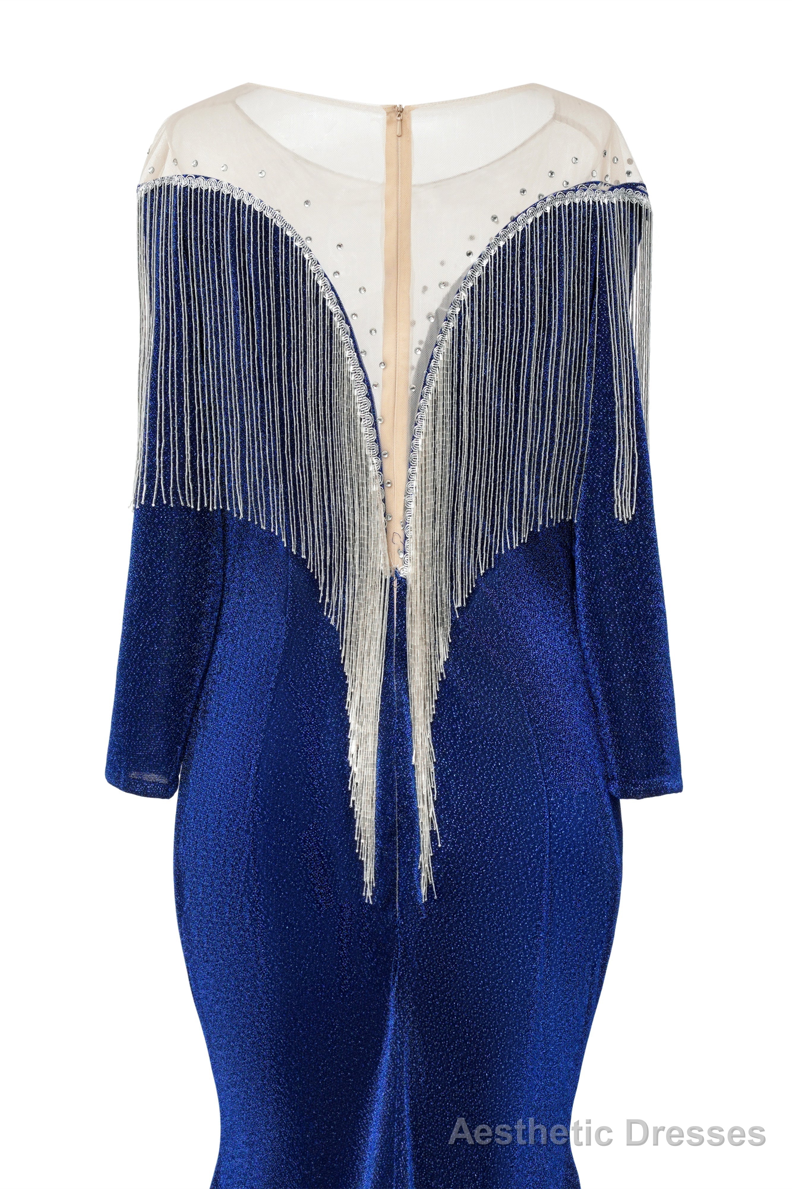 Deep V-neck Shiny Black Prom Dresses Long sleeves Mermaid Evening Party Dresses