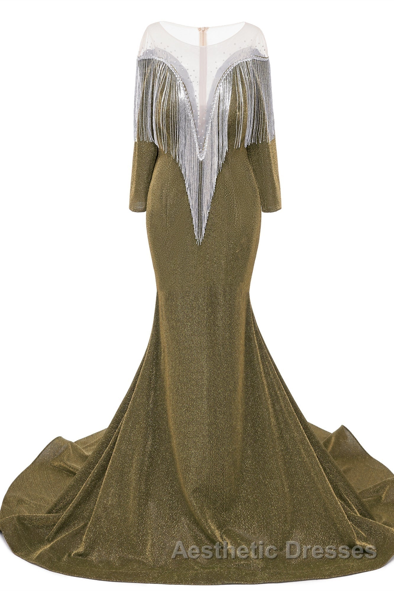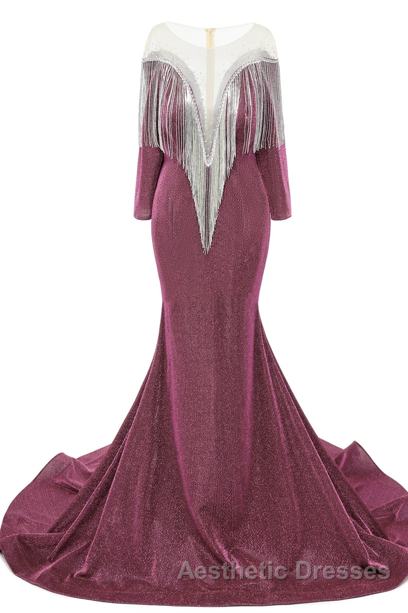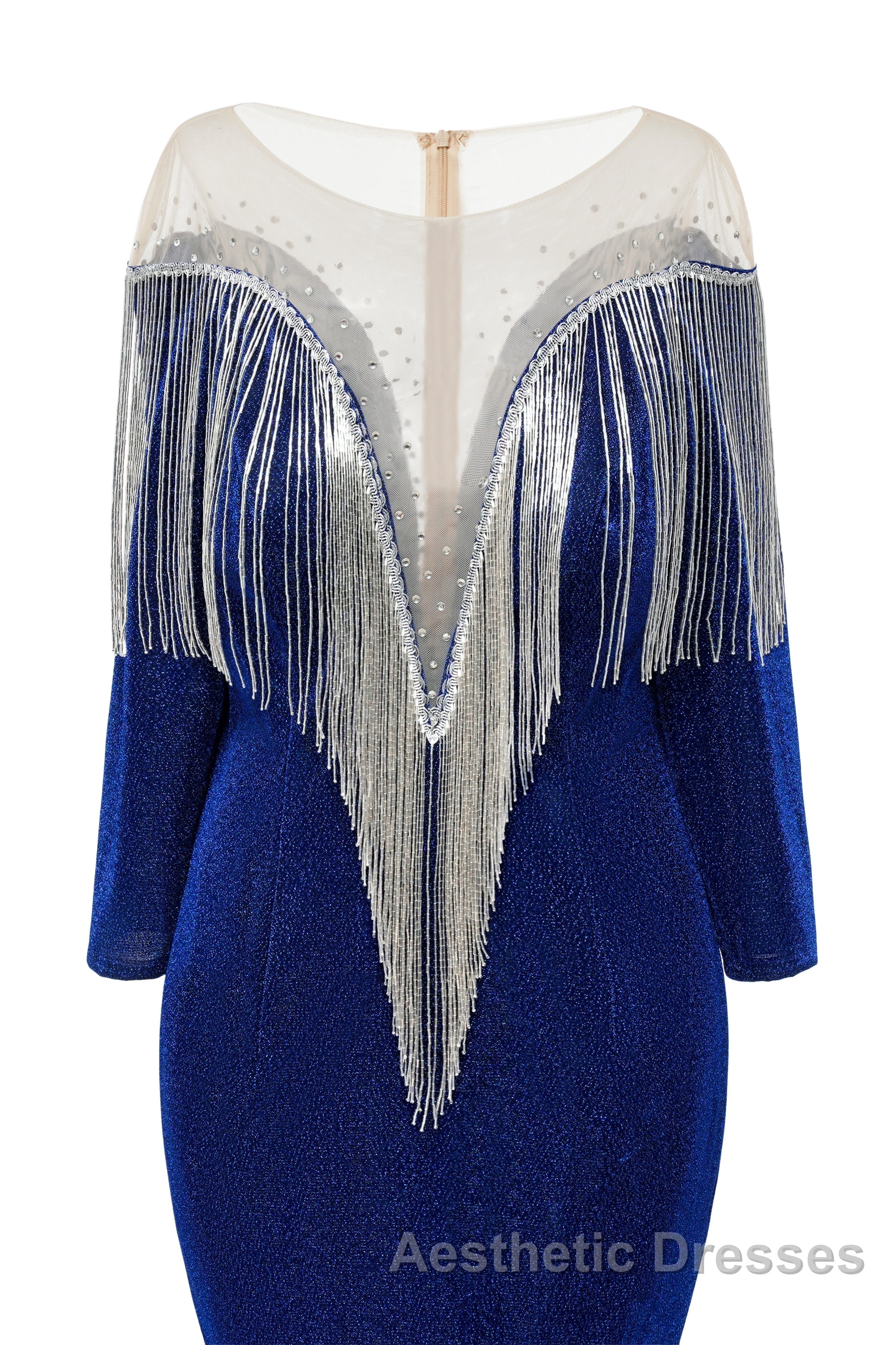 Deep V-neck Shiny Royal Blue Long sleeves Mermaid Evening Prom Dresses