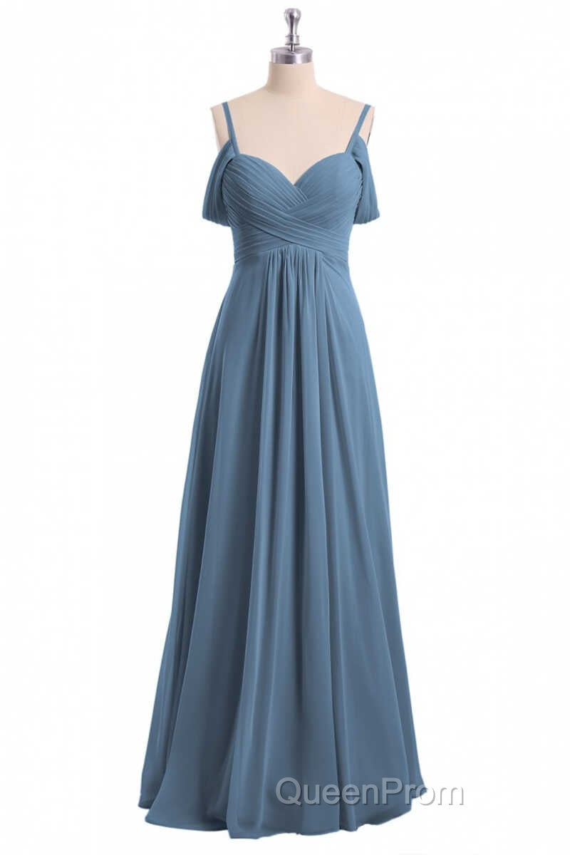 Dusty Blue Chiffon Cold Shoulder A-Line Long Bridesmaid Dresses