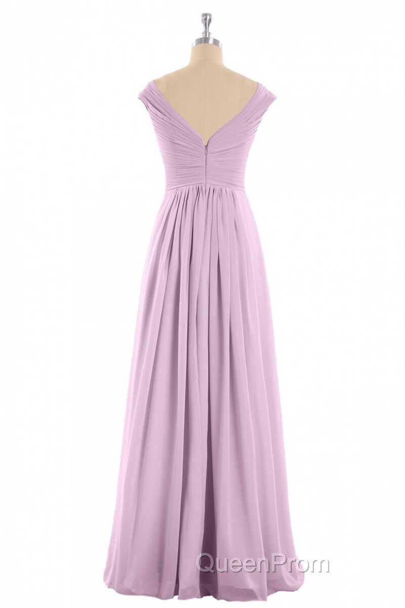 Dusty Purple Chiffon V-Neck Backless A-Line Long Bridesmaid Dresses