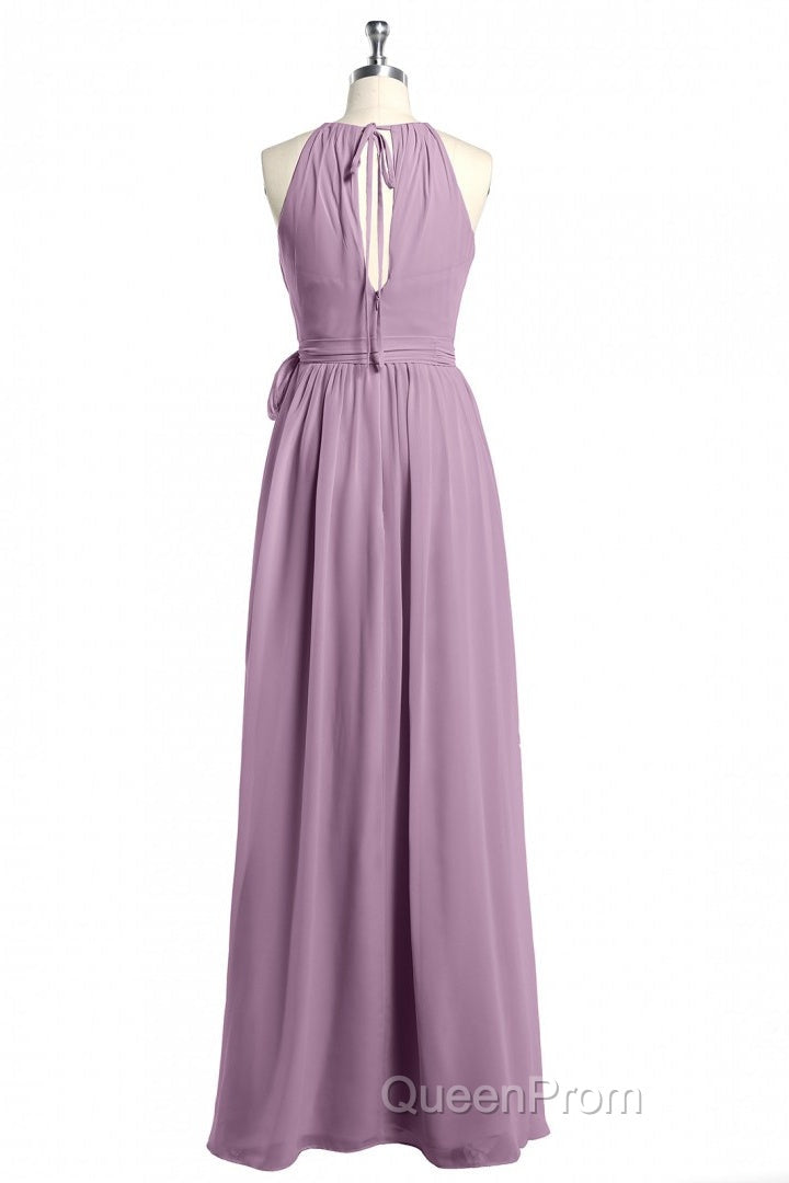 Dusty Purple Halter Keyhole Back Long Bridesmaid Dresses