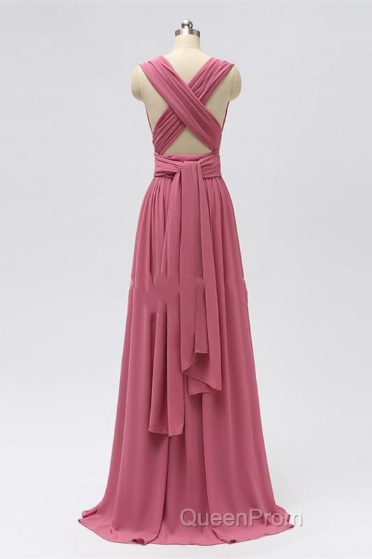 Dusty Rose Chiffon Wrap A-Line Long Bridesmaid Dresses