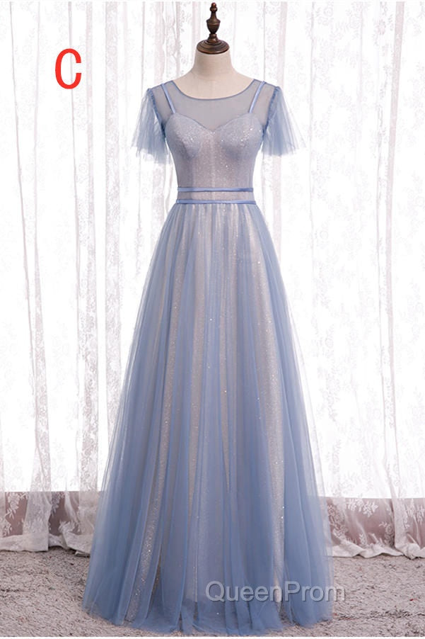 Elegant A-Line Dusty Blue Bridesmaid Dresses