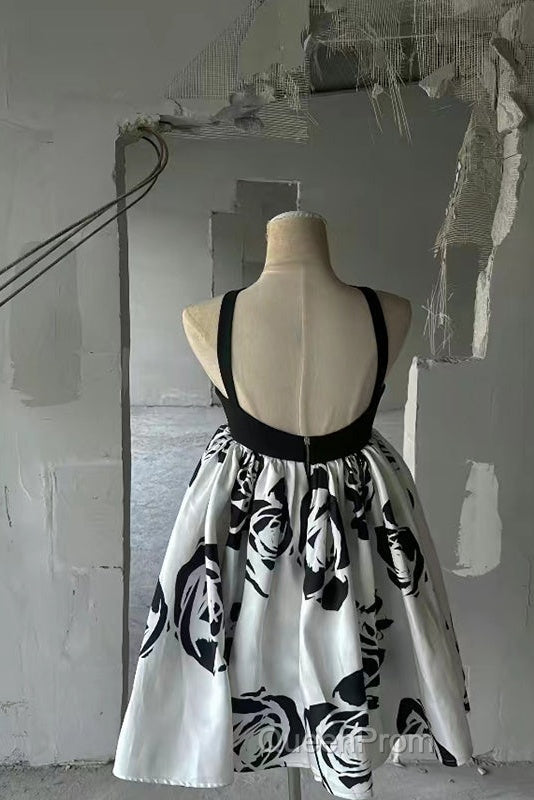 Elegant A-Line Flower Butterfly Black Short Homecoming Dresses Online,