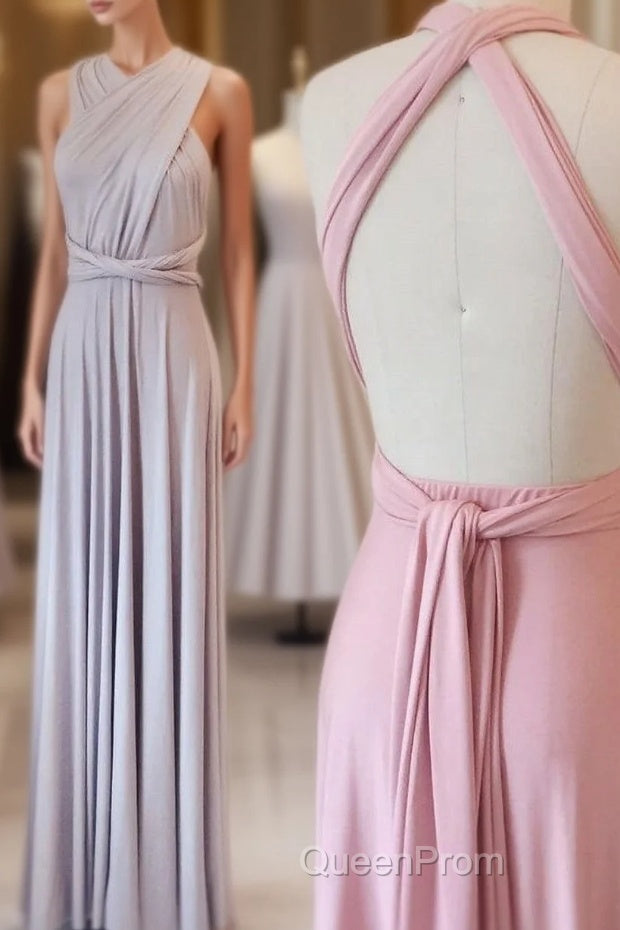 Elegant A-Line Pink Long Bridesmaid Dresses Wedding Party Dresses