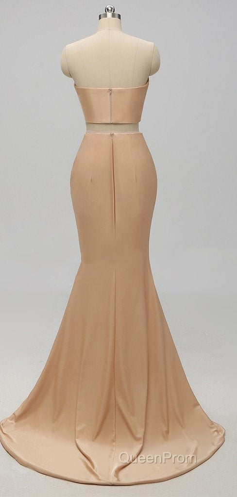 Elegant A-Line Sexy V Neck Gold Long Modest Side-Slit Bridesmaid Dresses