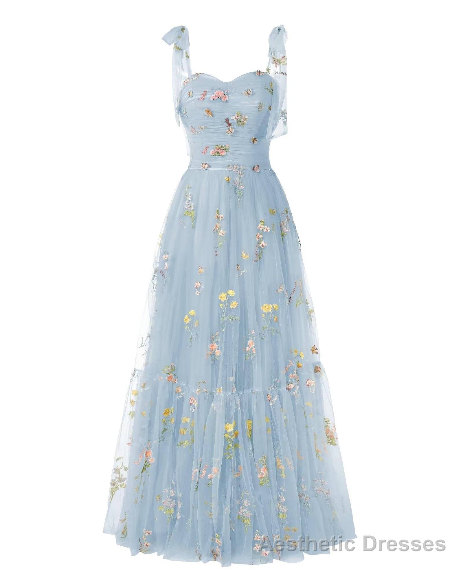 Elegant Embroidery Blue Prom Dresses Sweetheart Spaghetti Straps A Line Party Dress Long Simple Formal Dress